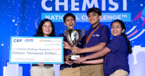ARLINGTON, VA – CEF is proud to announce that the Science Scholars Sandbox Team from Illinois has won first place in this year’s National Challenge, earning a $16,000 scholarship sponsored by Univar Solutions. They triumphed over more than 14,000 students across North America. The Hydrovolt Team from Massachusetts and the Biocharge Team from Virginia placed second and third, winning $12,000 and $8,000, respectively.
