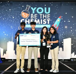 ARLINGTON, VA – The Chemical Educational Foundation® (CEF) announces a team of four students from Massachusetts, the Chemistry Enthusiasts, who rose to the top of 9,000 students to win the 2022 National You Be The Chemist Challenge and a $12,000 scholarship. When asked what advice they have for future participants, student Srinidhi Iyer said, “It is most important to just have fun, be confident, manage time well and efficiently, and never see the Challenge as a test but rather a major opportunity to grow as a young chemist in the making.”